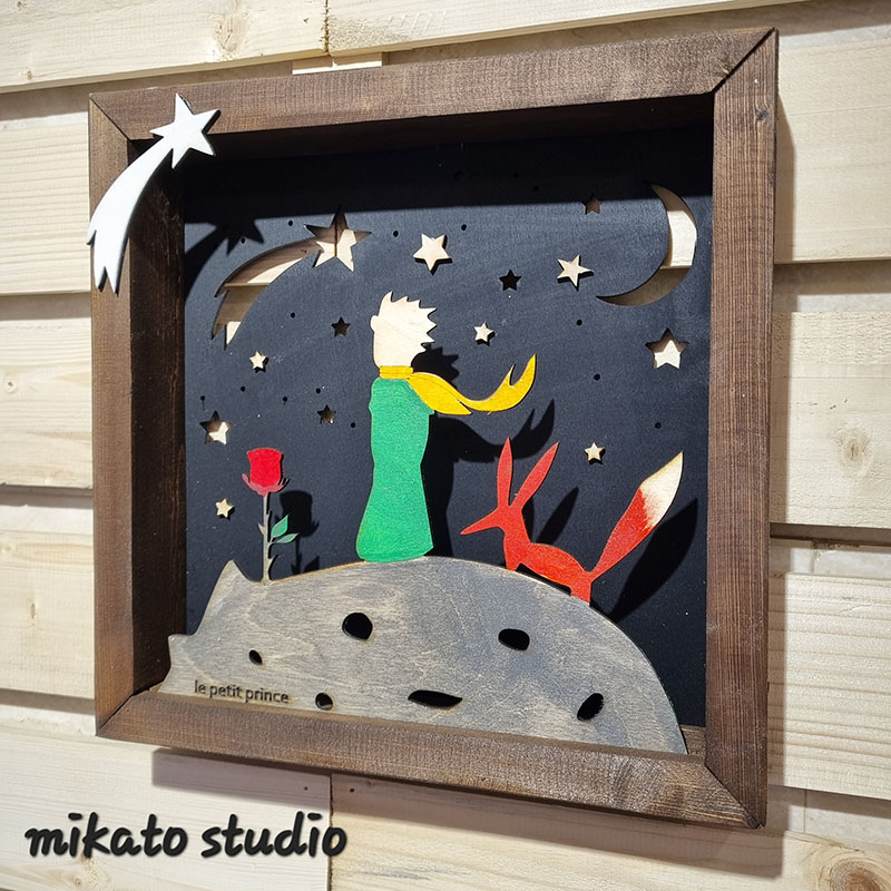 تابلو شازده کوچولو شامل دو لایه میباشد که از چوب کاج روسی ساخته شده و با رنگ اکرولیک رنگامیزی شده است . قاب تابلو از چوب کاج روسی با ضخامت مناسب است