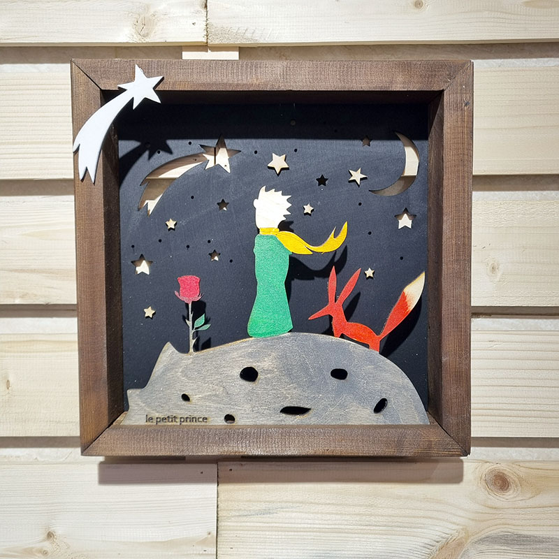 در دنیایی پر از شلوغی و فراموشی، تابلوی چوبی شازده کوچولو یادآور سادگی، عشق و معناست. تکهای از داستانی جاودانه، با حکاکیهایی از چوب که نه فقط طرح، بلکه حس را منتقل میکنند.