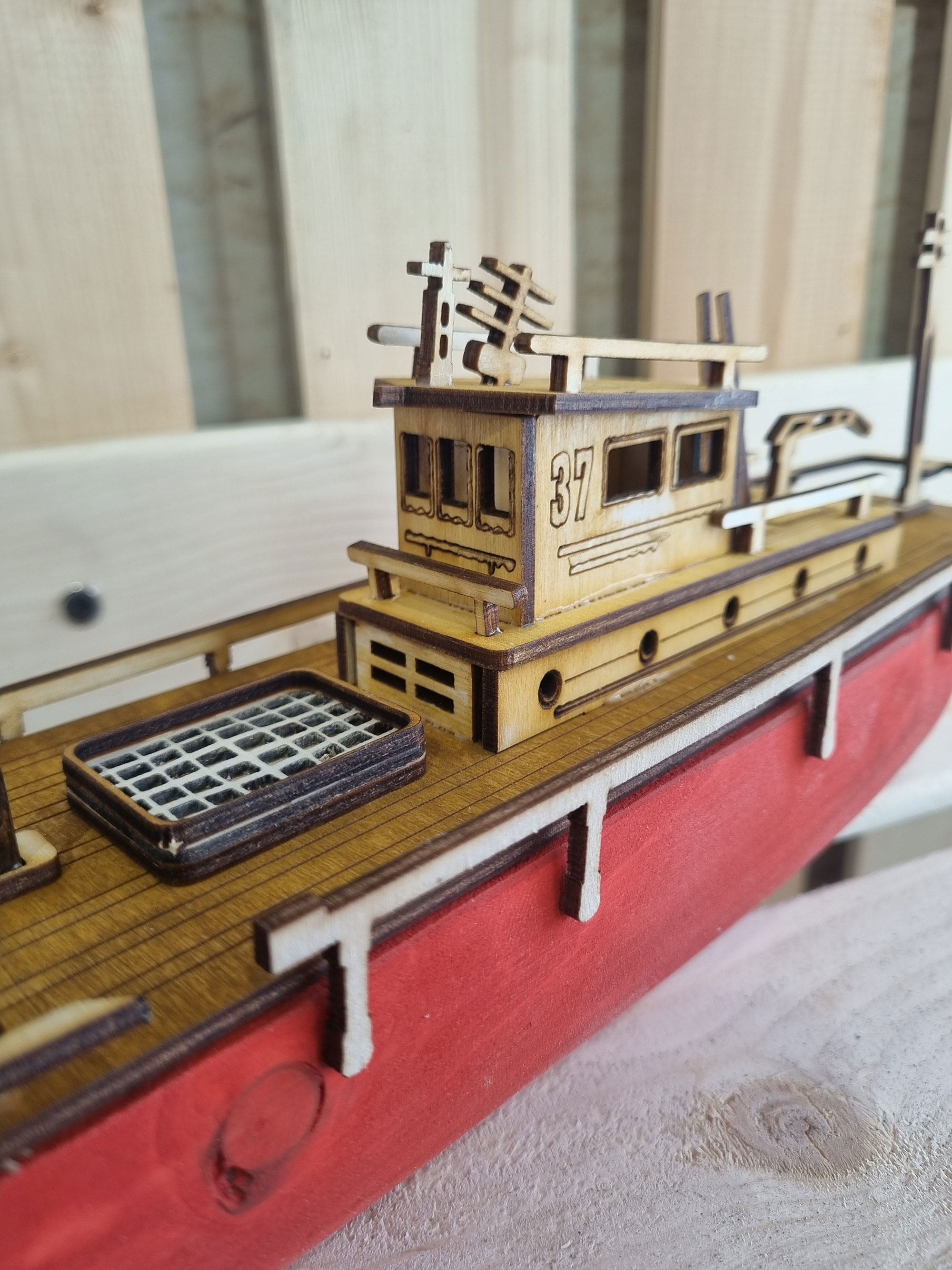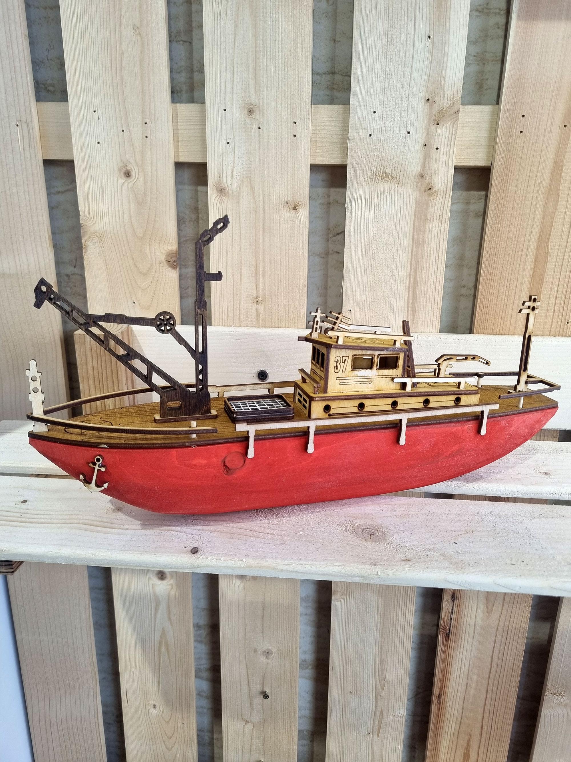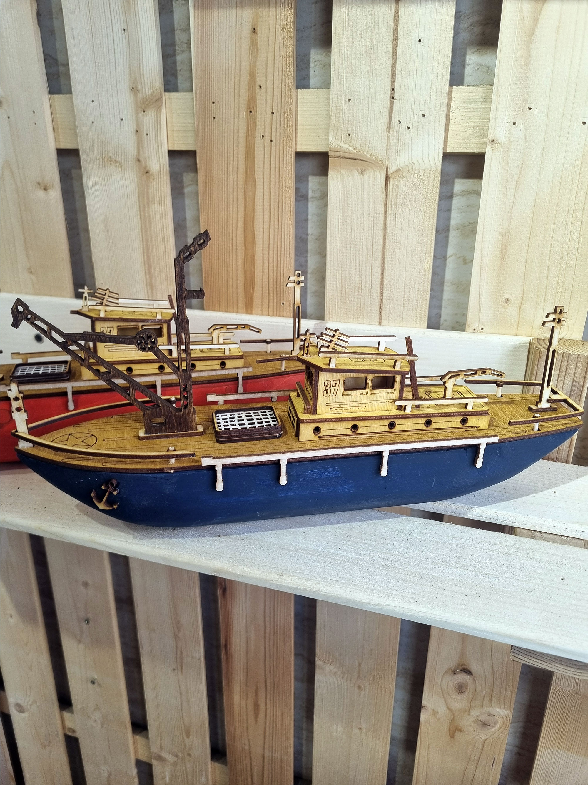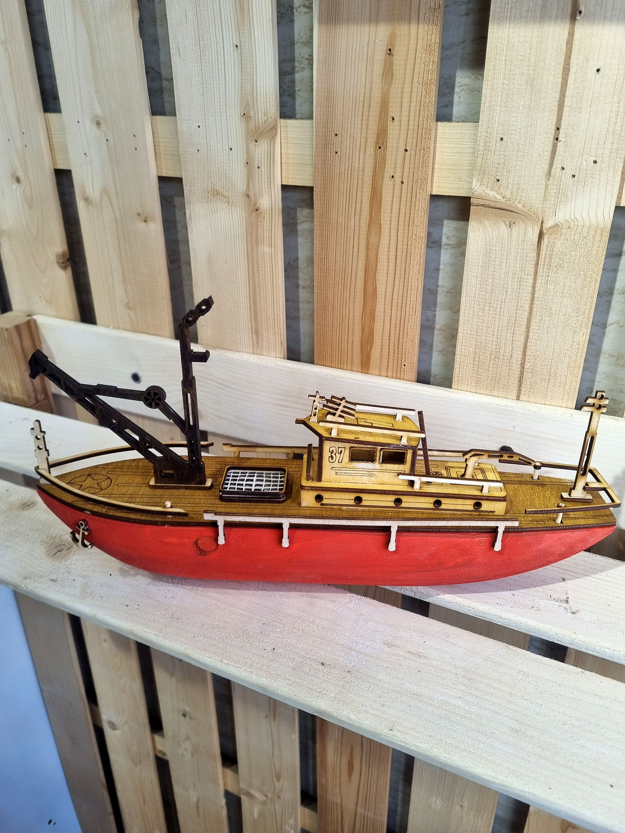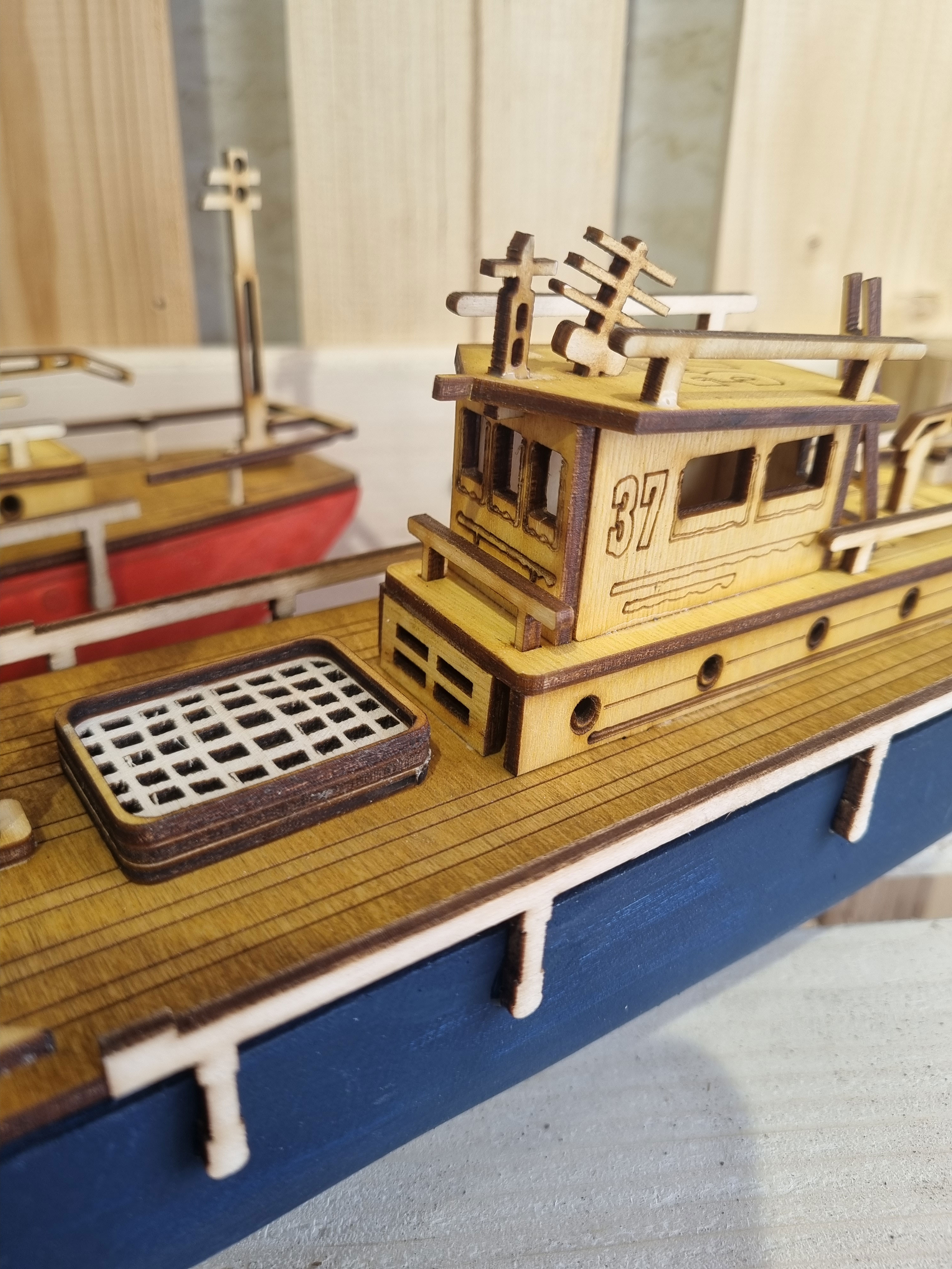ماکت کشتی چوبی مدل کشتی یدک کش تهیه شده از چوب درخت کاج روسی بدنه توپر چوبی مناسب قرار گرفتن برروی سطوح مختلف اعم از شلف و طبقه کتابخانه . ویترین و کانتر . میز و میز کنار مبلی