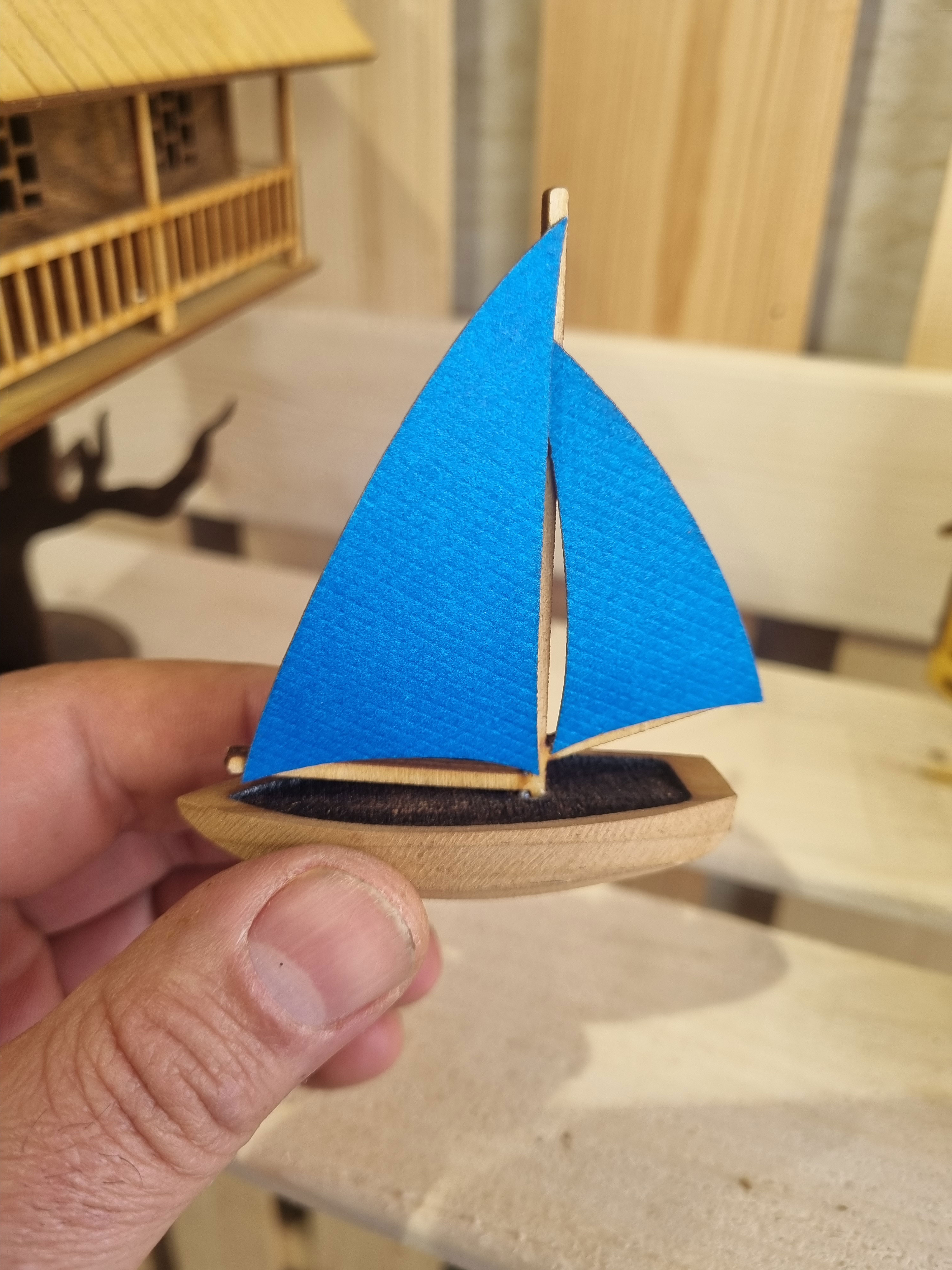 قایق بادبانی چوبی مینیاتوری ساخته از چوب روسی و بادبانهای مقوایی