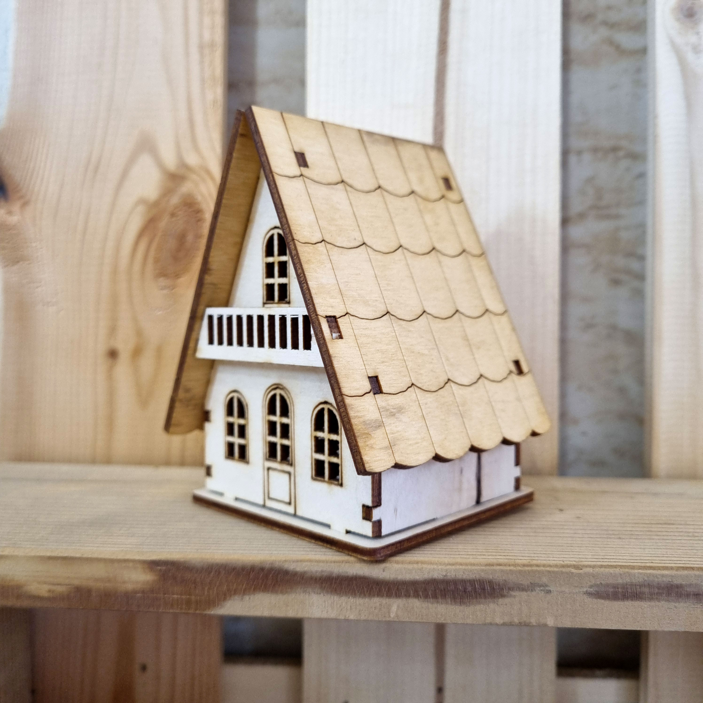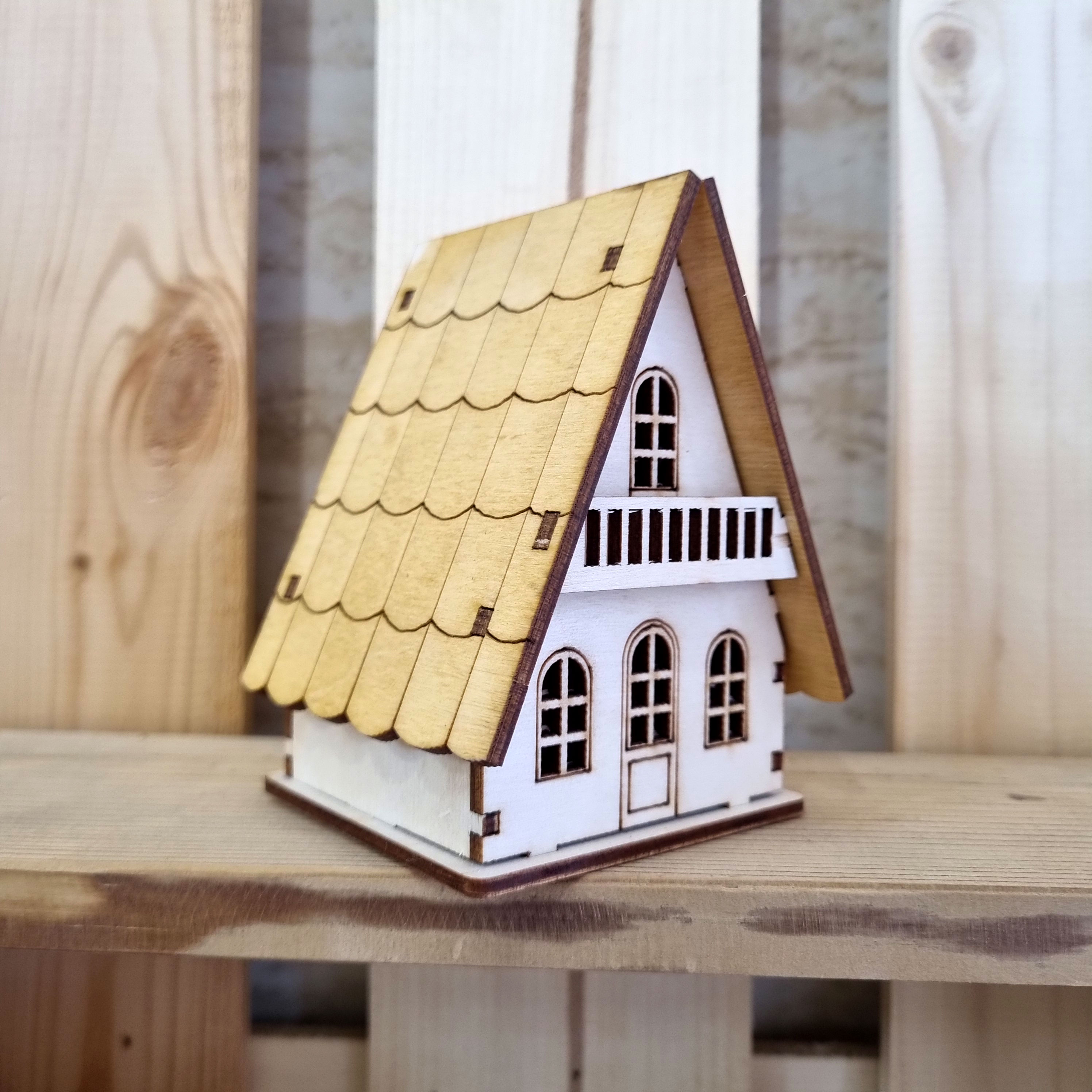 کلبه سوییسی مینیاتوری ساخته شده از چوب پلای وود روسی 3 میلیمتری که توسط لیزر برش دقیق و کامل شده است .
