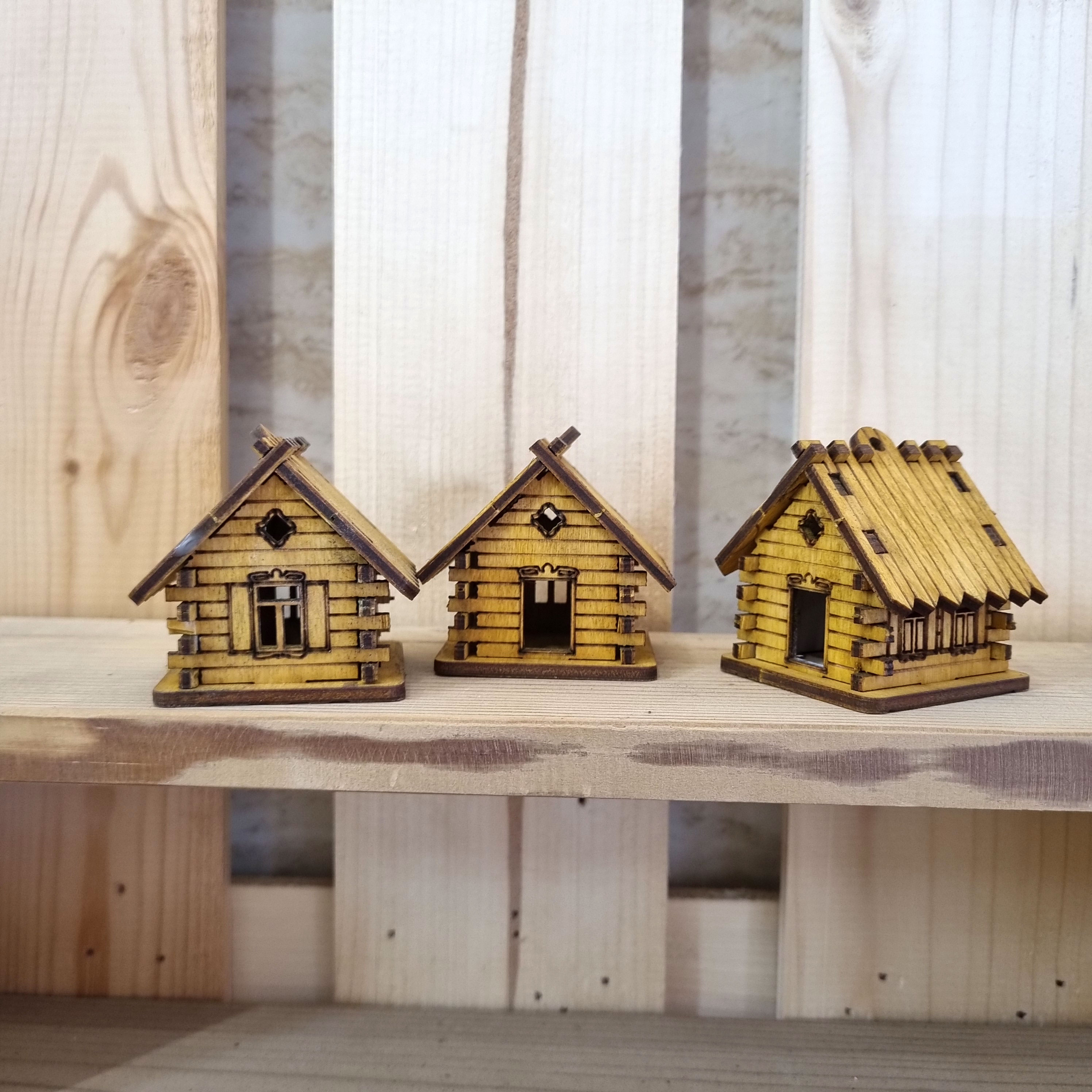 کلبه چوبی مینیاتوری ساخته شده از چوب پلای وود روسی دکوری زیبا و خاص برای قرار گرفتن بر روی سطوح و همچنین دارای قلاب برای اویز کردن است .