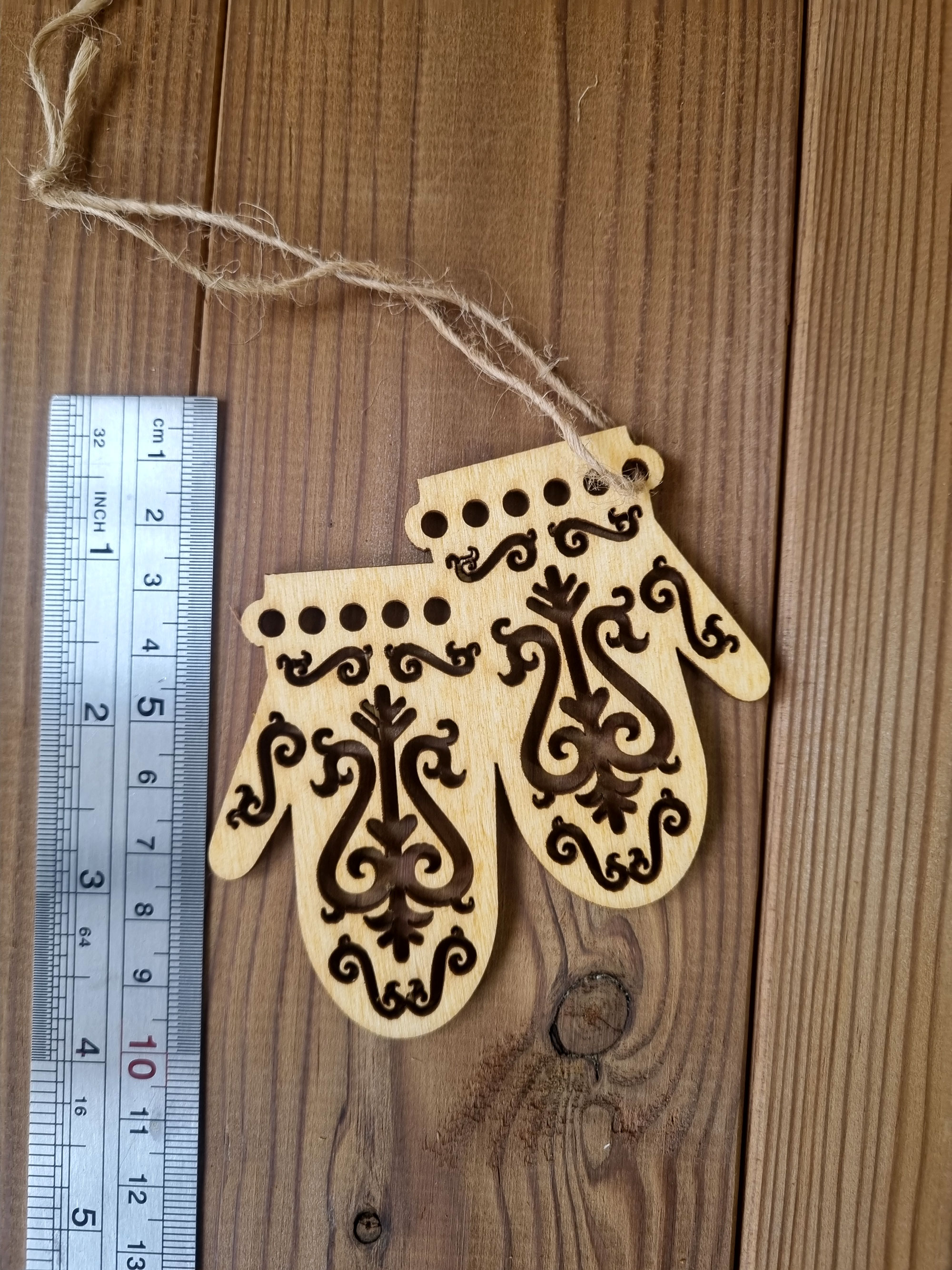 اکسسوری چوبی طرح دستکش کریسمسی دارای قلاب اویز جنس چوب ورق چوب پلای وود روسی با قطر 3 میلیمتر قابلیت رنگامیزی با شاپان . ابرنگ . مداد شمعی . مداد رنگی و انواع رنگها