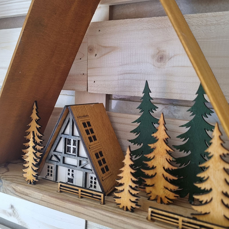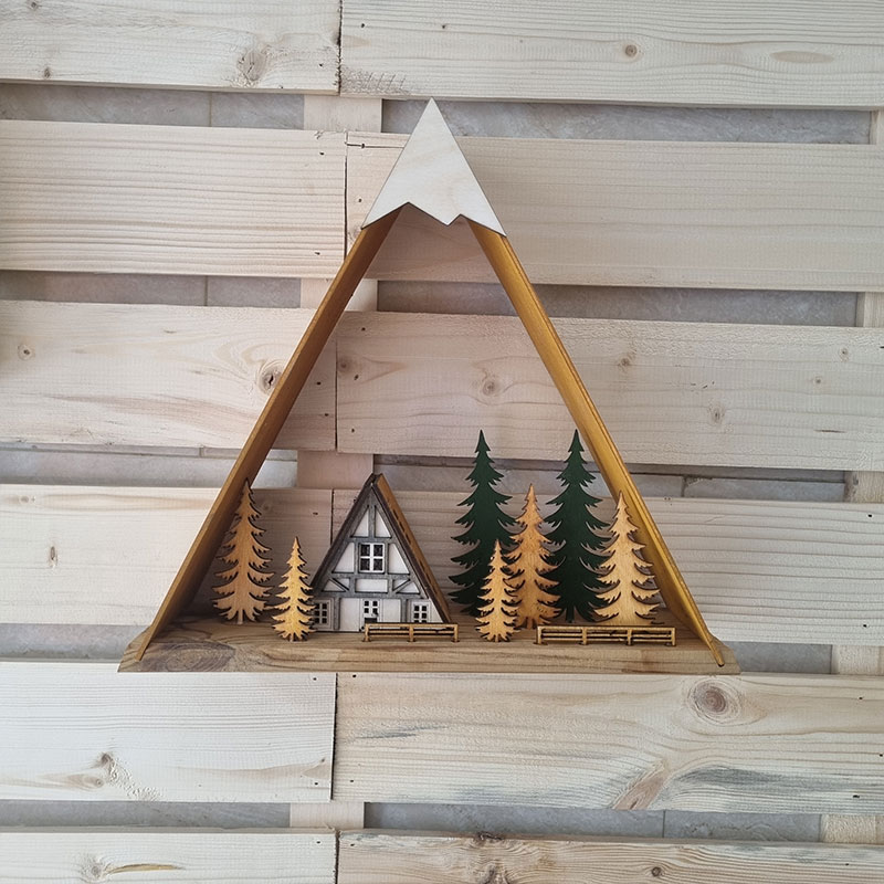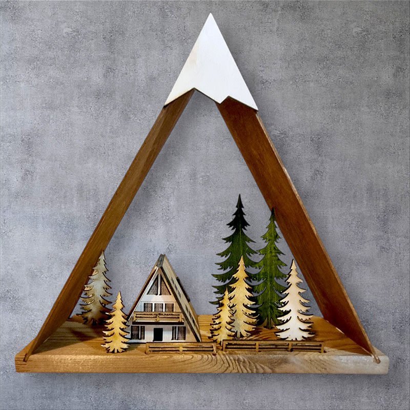 تابلو دکوری چوبی کلبه سوییسی 3گوش