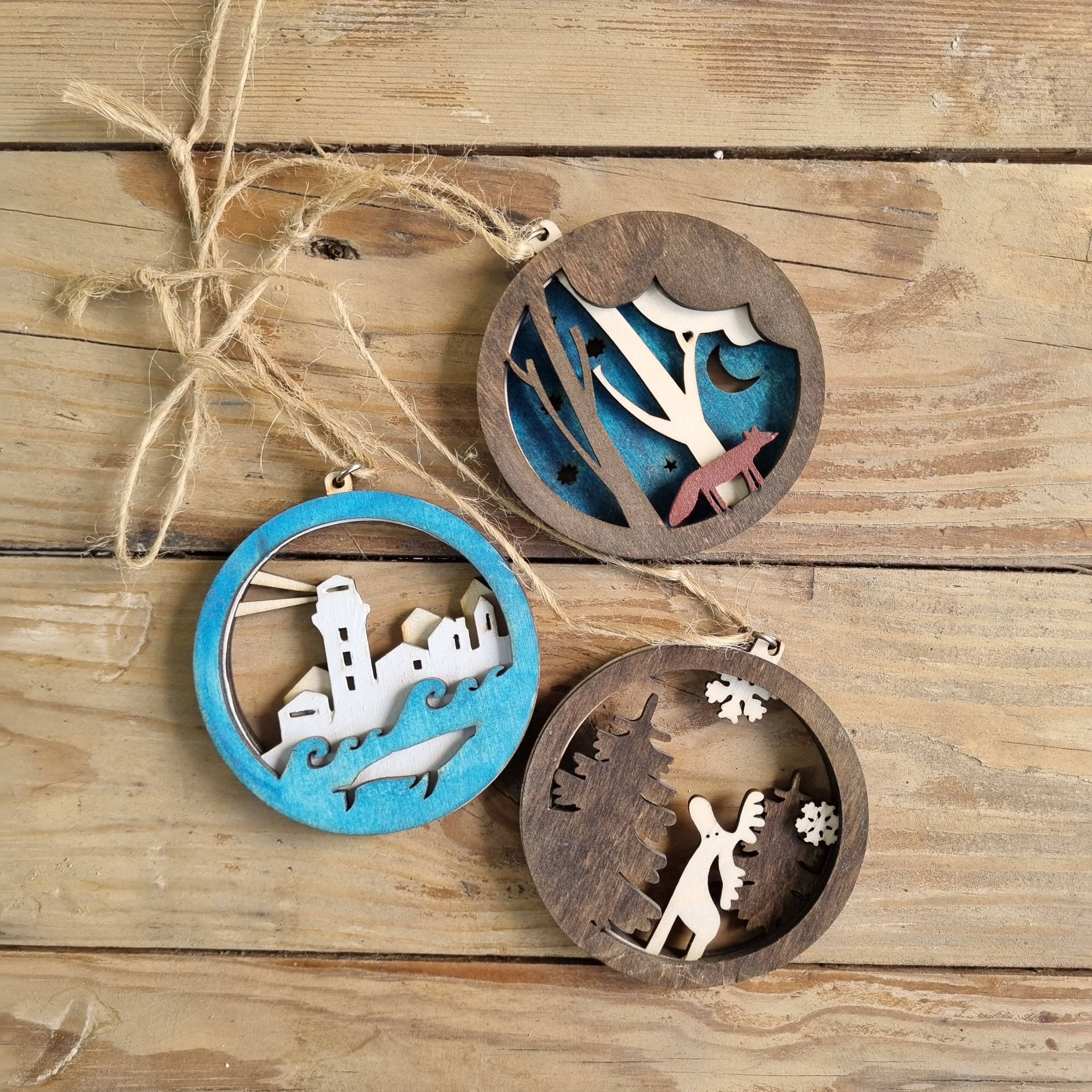 اویز دکوری دایره (اورنامنت ) جنگل کاج و گوزن