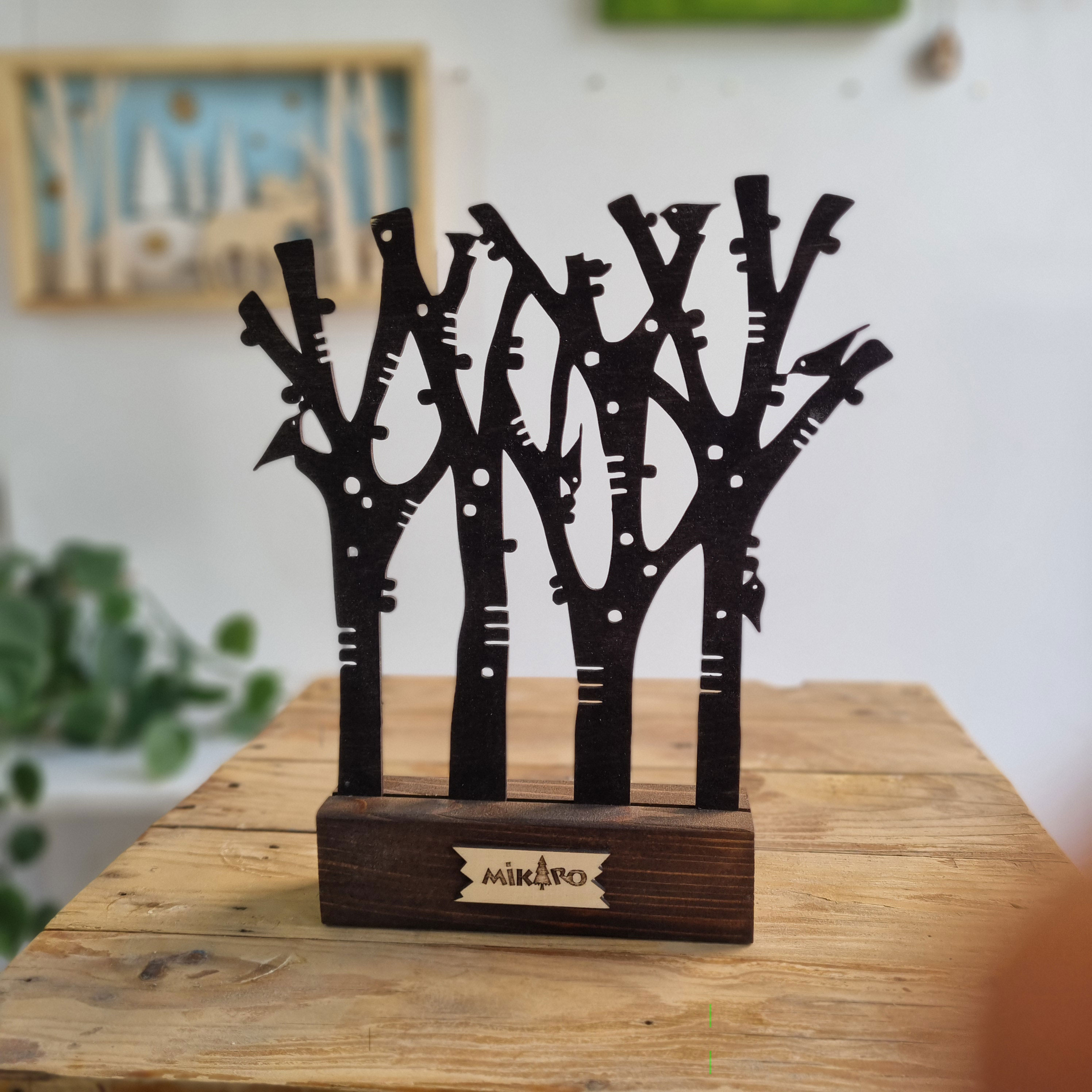 دکوری چوبی رومیزی طرح درخت برگرفته از سبک نقاشی های آزتک قوم قدیمی جنگلهای امازون