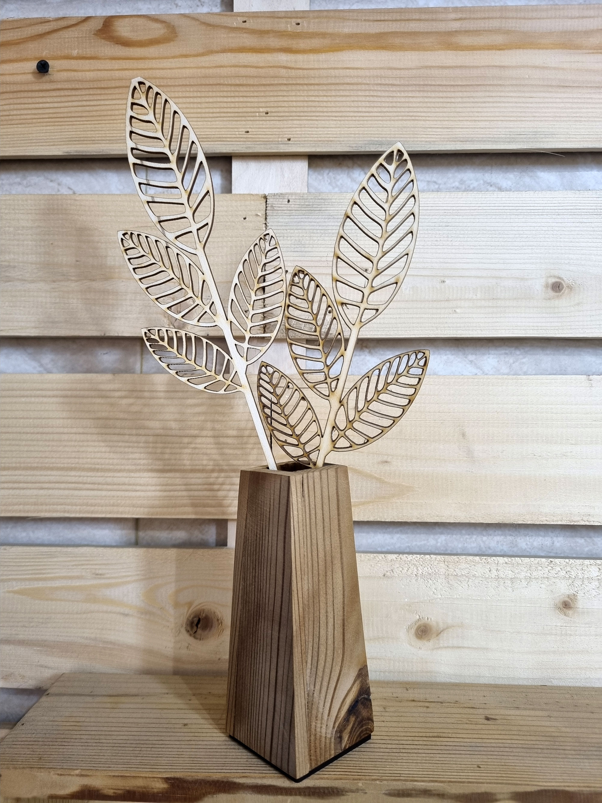 دکوری چوبی شاخه برگ تزیینی تک شاخه ارتفاع 30 سانتیمتر