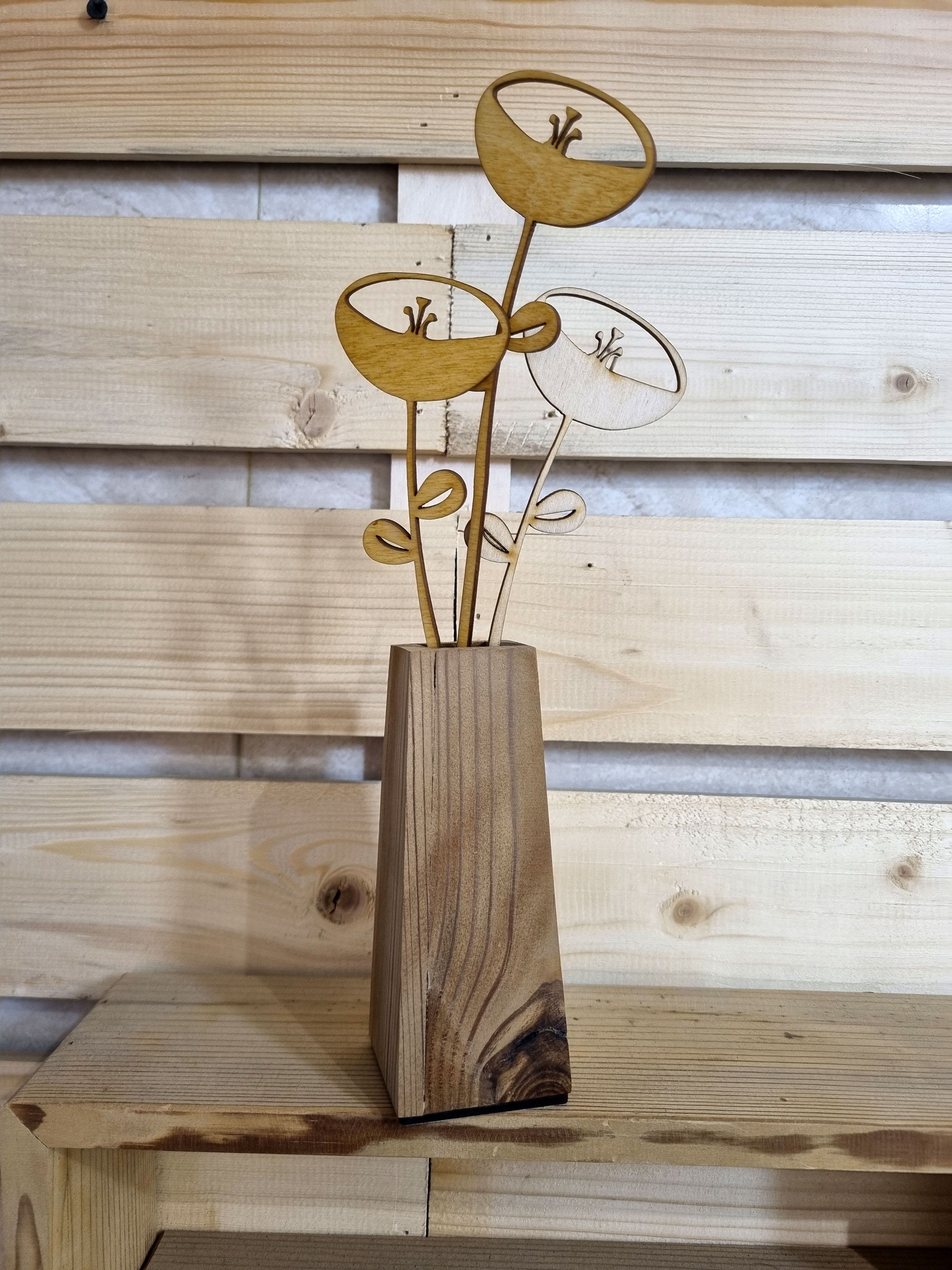 دکوری چوبی شاخه گل کاسه ای تک شاخه ارتفاع 25 سانتیمتر