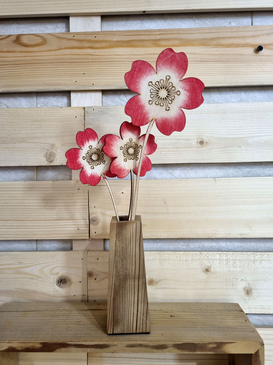 دکوری چوبی گل شقایق ارتفاع 35 سانتیمتر