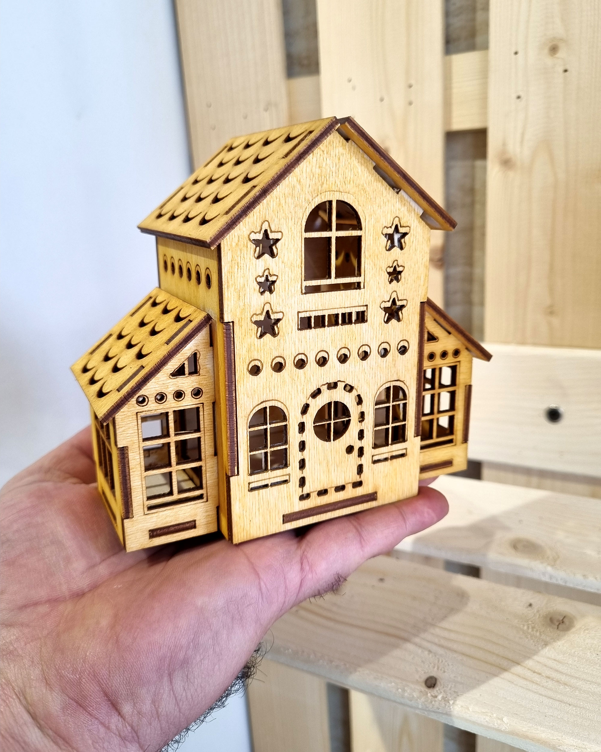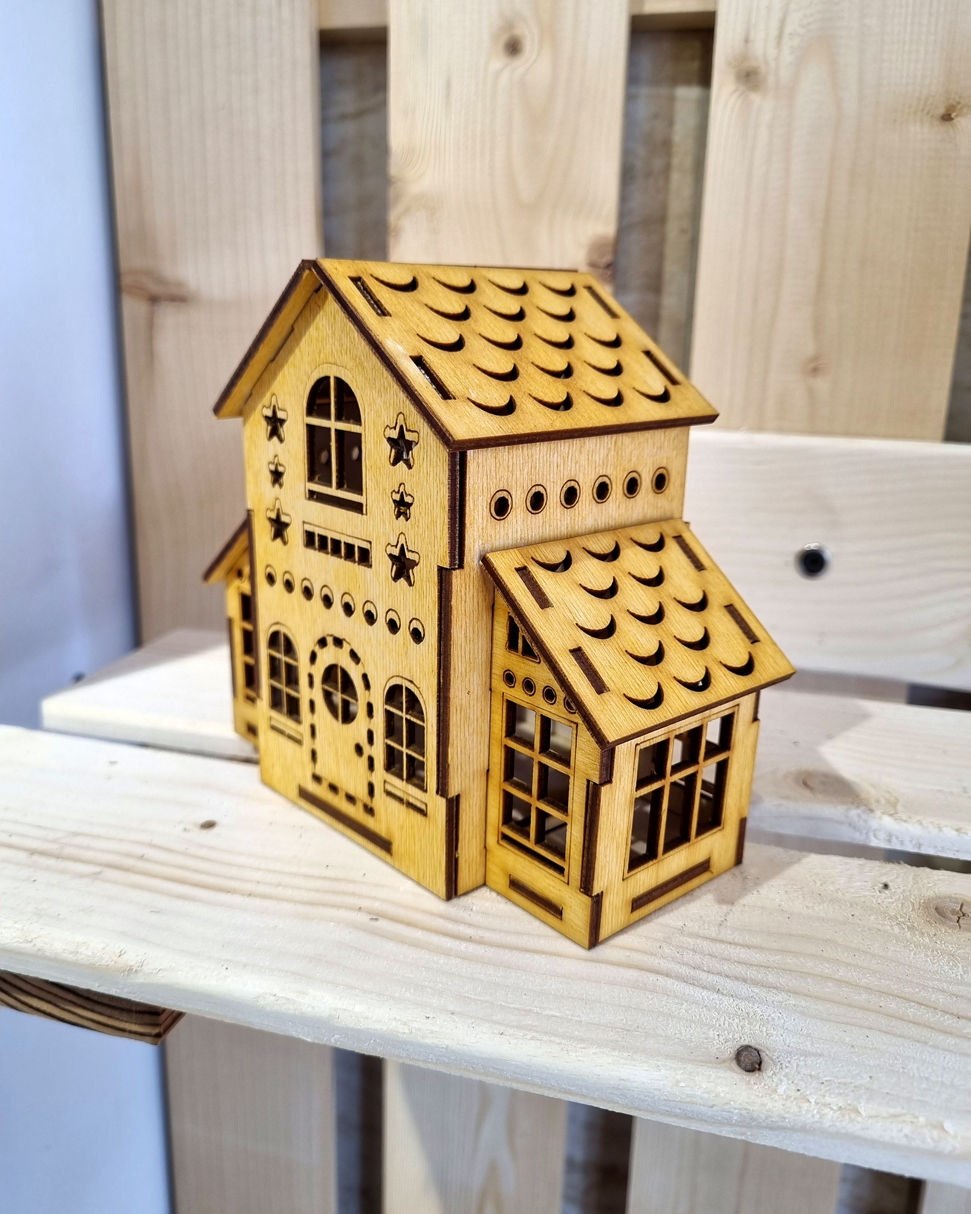 دکوری چوبی کلبه کینیانئوری خانه ویلایی ساخته شده از چوب پلای وود کاج روسی مناسب قرار گرفتن برروی سطوح مختلف مانند کتابخانه و شلف . میز کنار مبلی و ویترین