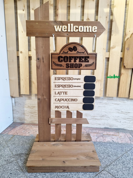 تابلو ایستاده کافی شاپ طرح گاردن دارای منو کافه برای قیمت گذاری با دستی با گچ